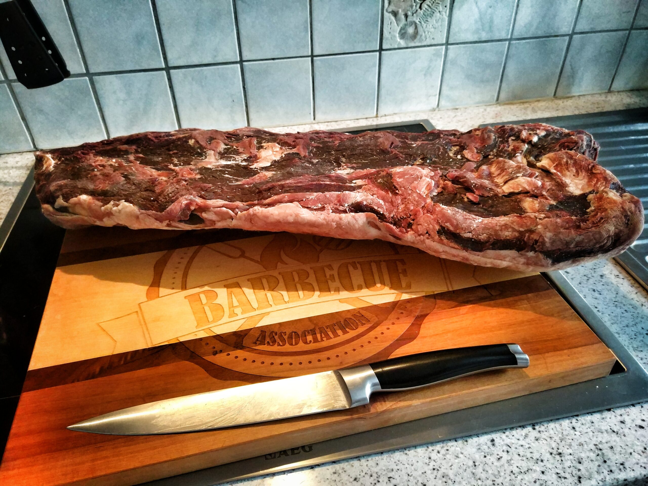 - Start am 10.6. mit einem 7,373 kg schweren Roastbeef (bereits ohne Knochen)