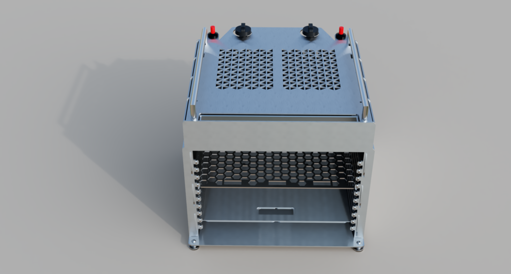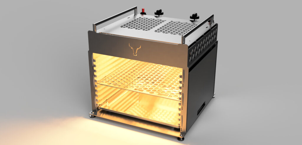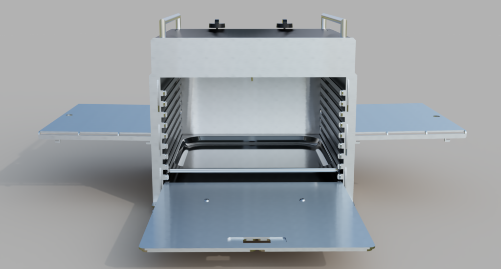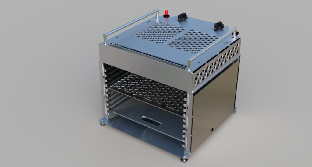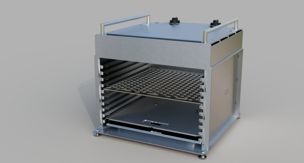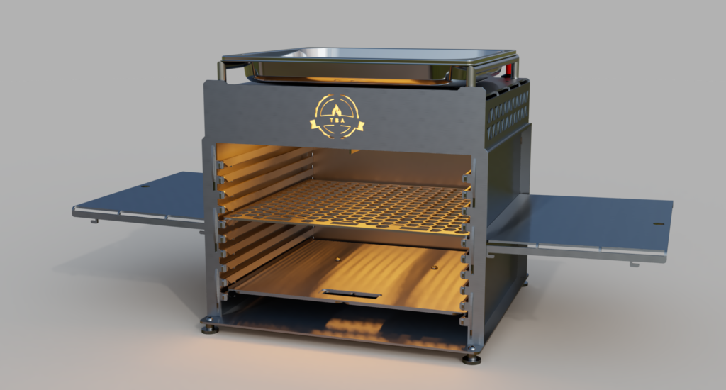 Grundlage diesmal die Gastronorm 2/3 da trotz der großzügigen „Twin“ Auslegung es immer wieder ein paar Stücke geschafft haben, den Platz im Grill eng werden zu lassen: der neue Grill trotz des größeren Brennraumes nur eine minimal größere Grundfläche von 40×40 haben!