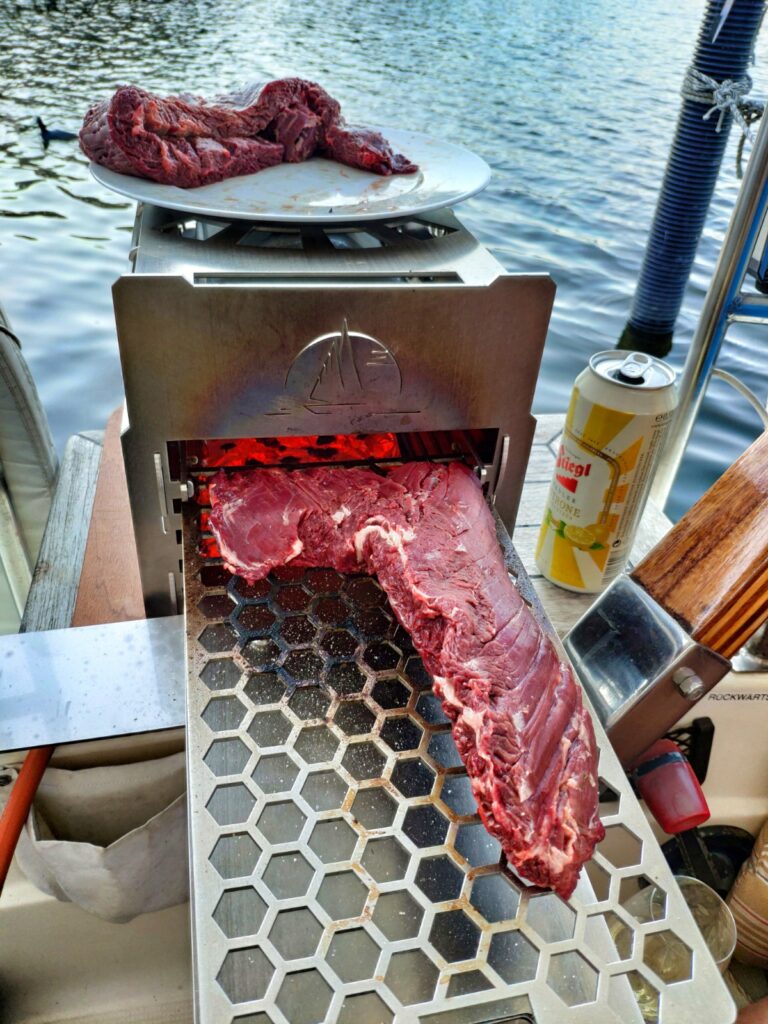 Aus eigenem Bedarf habe ich mir überlegt, dass es doch recht praktisch wäre, wenn man unterwegs sein Steak richtig braten könnte… den Oberhitzegrill schleppt man ja nicht mit. Oder doch?